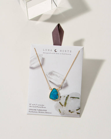 Earth, Wind and Fire Genuine Stone Necklace Gold- Turquoise