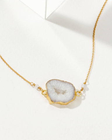 Earthly Geode Necklace- Agate & Moonstone