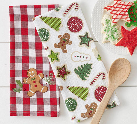 Red and White Checkered Gingerbread Man Embellished Dishtowel.
